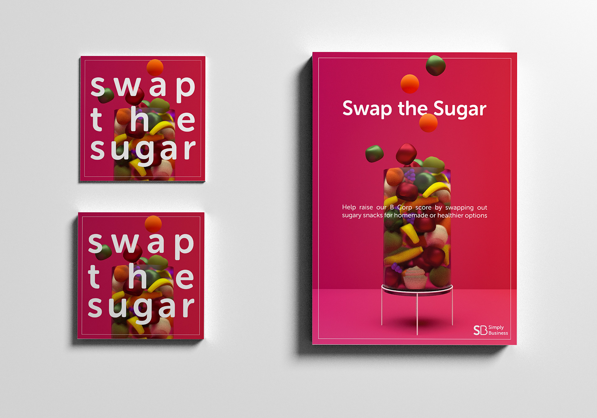 Swap The Sugar, proposed campaign including an animation, sticker and poster design, 2019